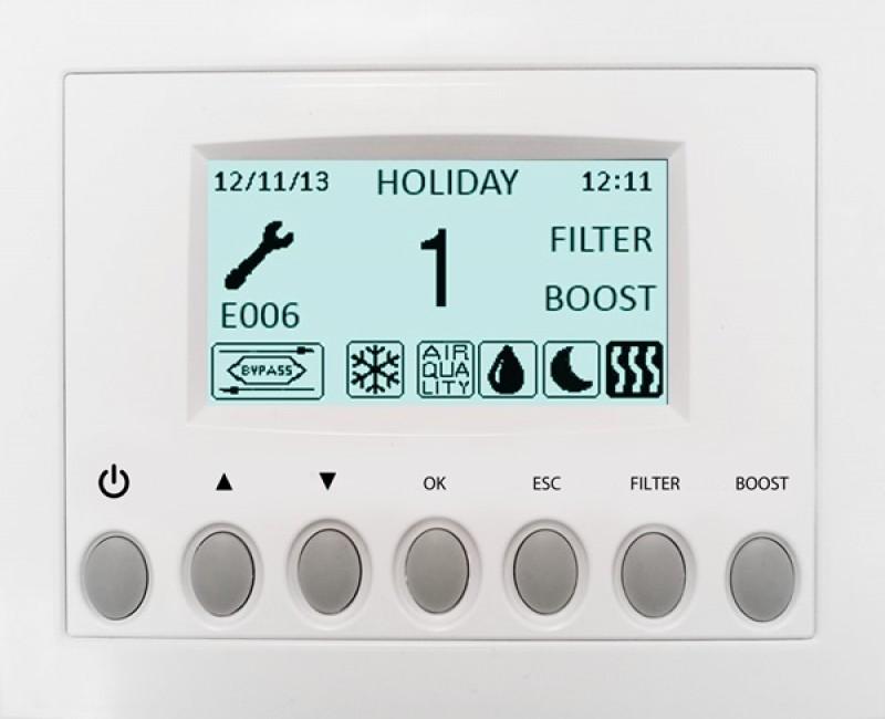 ABP változat: automata bypass funkcióval (hőcsere nélküli szellőztetés lehetősége, szükség esetén), a készülékhez mellékelt Aerauliqa CTRL-DISP multifunkcionális szabályzó egységgel.