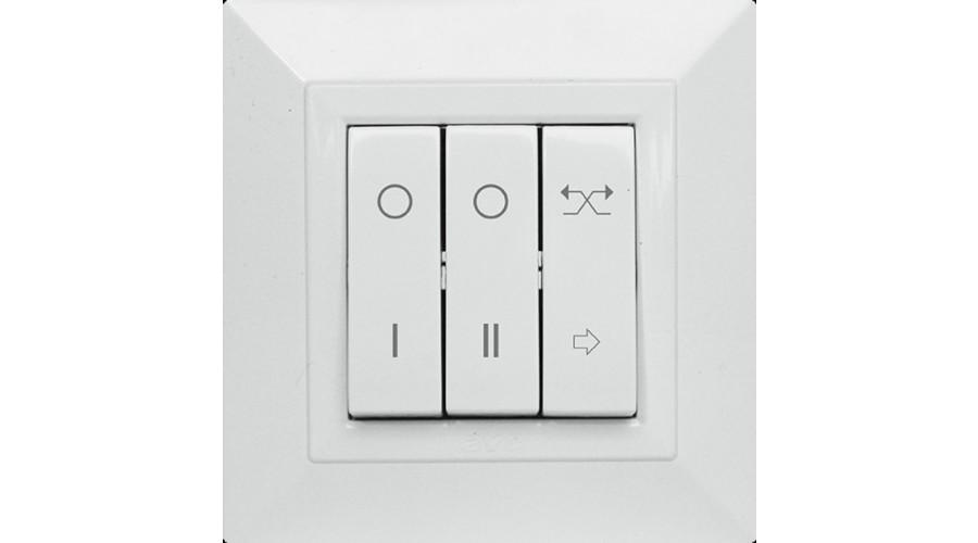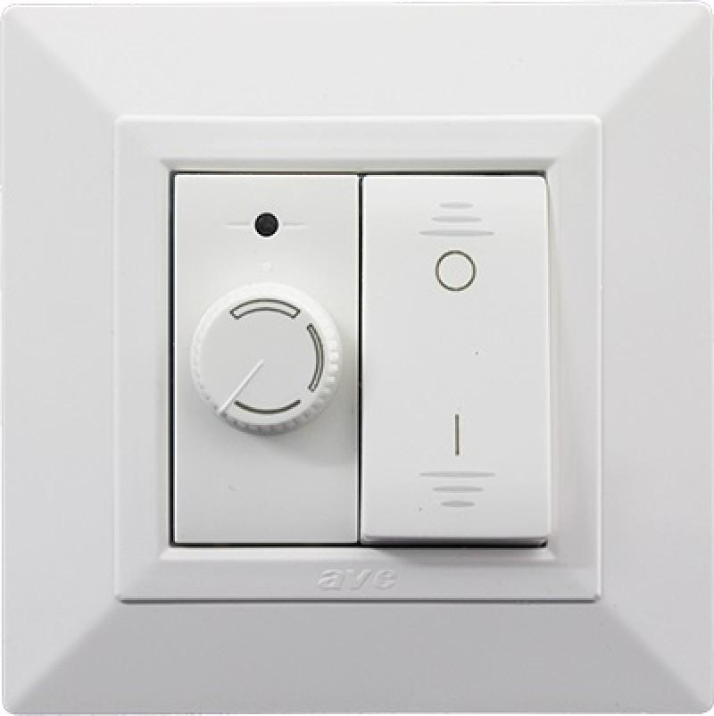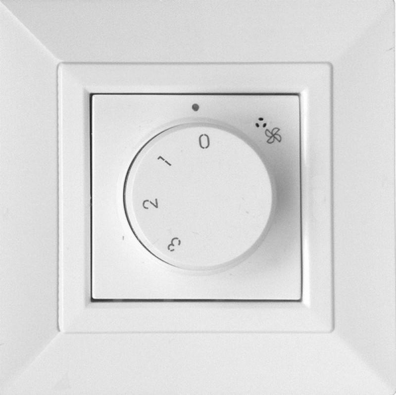 | Három kapcsolóval rendelkező egység süllyesztett kivitelben. | Elektronikus sebesség szabályozó, melyen forgatógomb és BE/KI kapcsoló található. | Külső páraérzékelést és késleltetett leállítást biztosító szabályozó egység. |