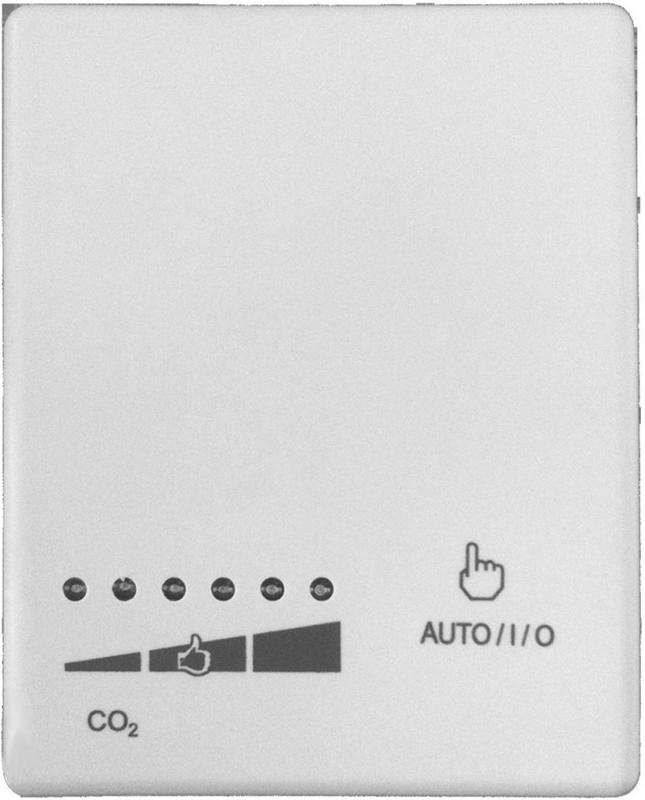 | Külső mozgásérzékelős szabályozó egység, páraérzékelő és késleltetett leállítást biztosító funkcióval. | Elektronikus időkapcsoló, melyen a ventilátor egység utószellőztető funkciójának működési ideje állítható. | Szén-dioxid koncentrációt érzékelő szellőztető egység. |