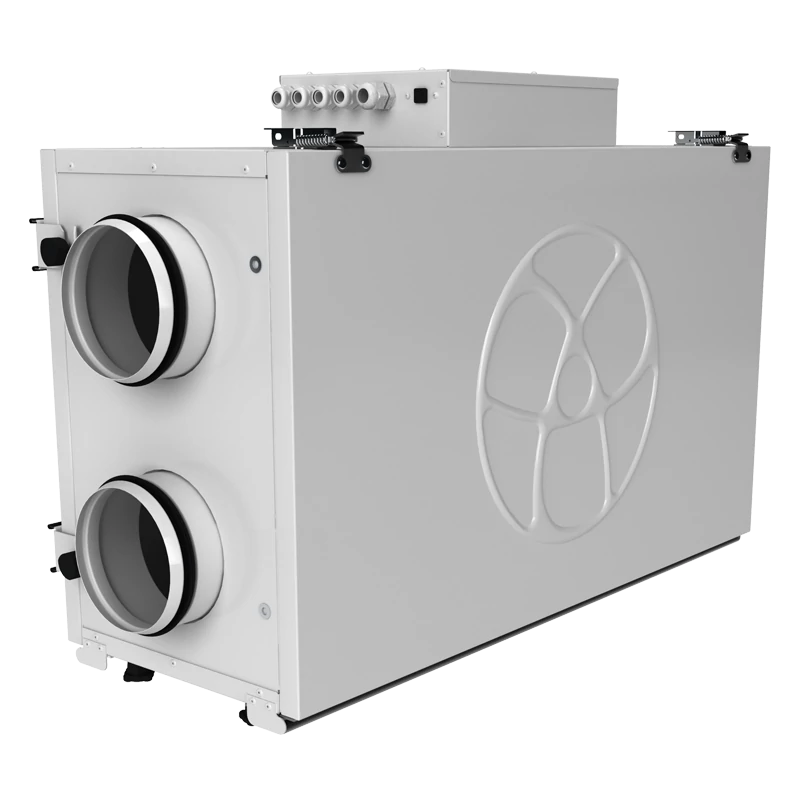 Hővisszanyerős légkezelő berendezés az energiahatékony szellőztetés kialakításához lakásokban, családi házakban, irodákban és egyéb helyiségekben. Hő és akár páravisszanyeréssel csökkenthetjük az energiafelhasználást és növelhetjük a komfortot a belső terekben. Vezérléssel testreszabható és igény szerint szabályozható a szellőzés az épületben. Légkezelő berendezés álló vagy oldalfali beépítés, EC motor, horizontális 125 mm-es csonkokkal, keresztáramú entalpia hővisszanyerővel, 250 m3/h 100 Pa teljesítménnyel, S14 vezérléssel.