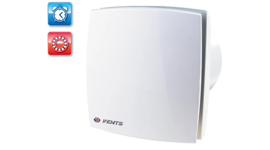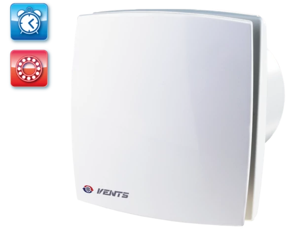 UV-álló ABS műanyagból készült, fürdőszoba, zuhanyzó, konyha és egyéb használati helyiség folyamatos vagy időszakos elszívására. Dekoratív előlapos háztartási ventilátor, 100 mm légcsatornához, időrelével, emelt légszállítás.
