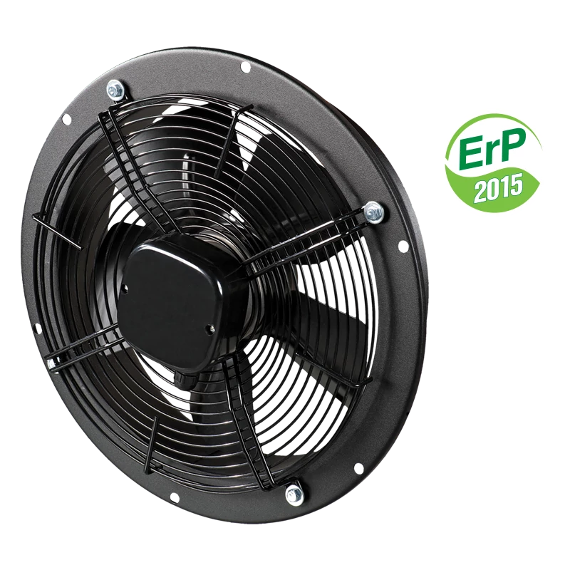 "Befúvó vagy elszívó ventilátorok olyan helyiségekhez, ahol nagy légáramlás szükséges viszonylag alacsony ellenállás mellett. Kültéri falra szerelhető. Fém házas kisnyomású axiálventilátor, 250 mm névleges méretben, 1050 m3/h, 230 V, 50 Hz, IP X4"