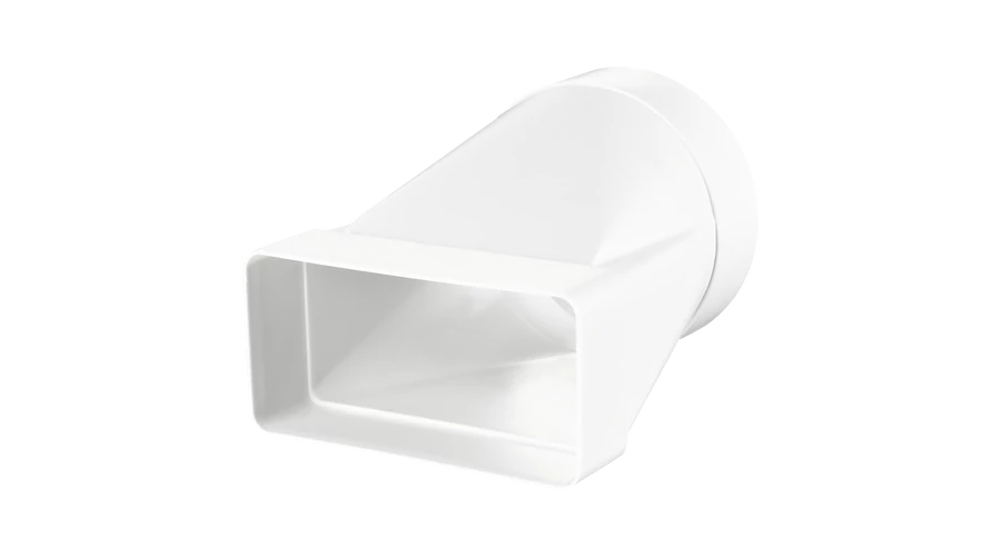 Fehér PVC-ből készült, befúváshoz és elszíváshoz használt légtechnikai elem. Műanyag átalakító idom, egyenes, excentrikus, 60*120 mm átmérő, 100 mm keresztmetszet.