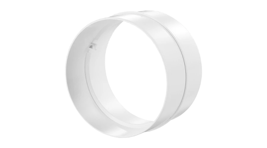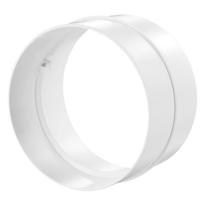 Fehér PVC-ből készült, befúváshoz és elszíváshoz használt légtechnikai elem. Műanyag kör csőtoldó, 100 mm kör légcsatornához.