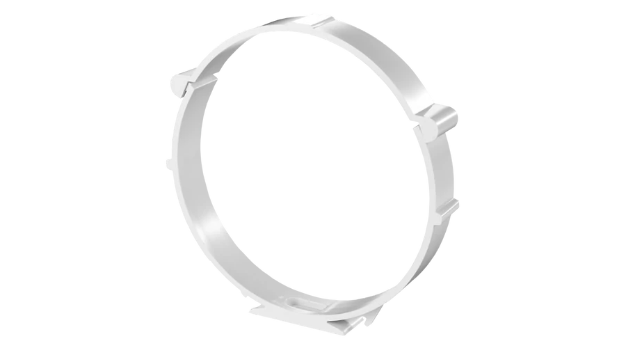 Fehér PVC-ből készült, befúváshoz és elszíváshoz használt légtechnikai elem. Műanyag felfogató elem, kör légcsatornához, 200 mm átmérővel.