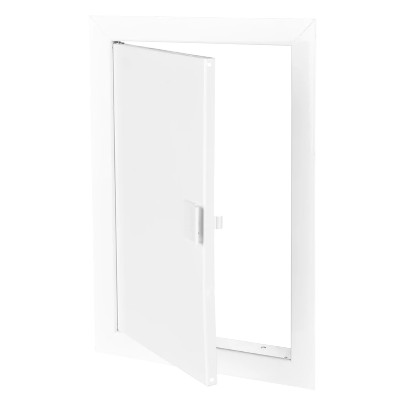Acélból készült, tartós porbevonattal, amely 100%-os korrózióvédelmet biztosít. Bal vagy jobb oldali nyitás. Műanyag fogantyúval van ellátva a kényelmes nyitás és zárás érdekében. 600x600 mm.