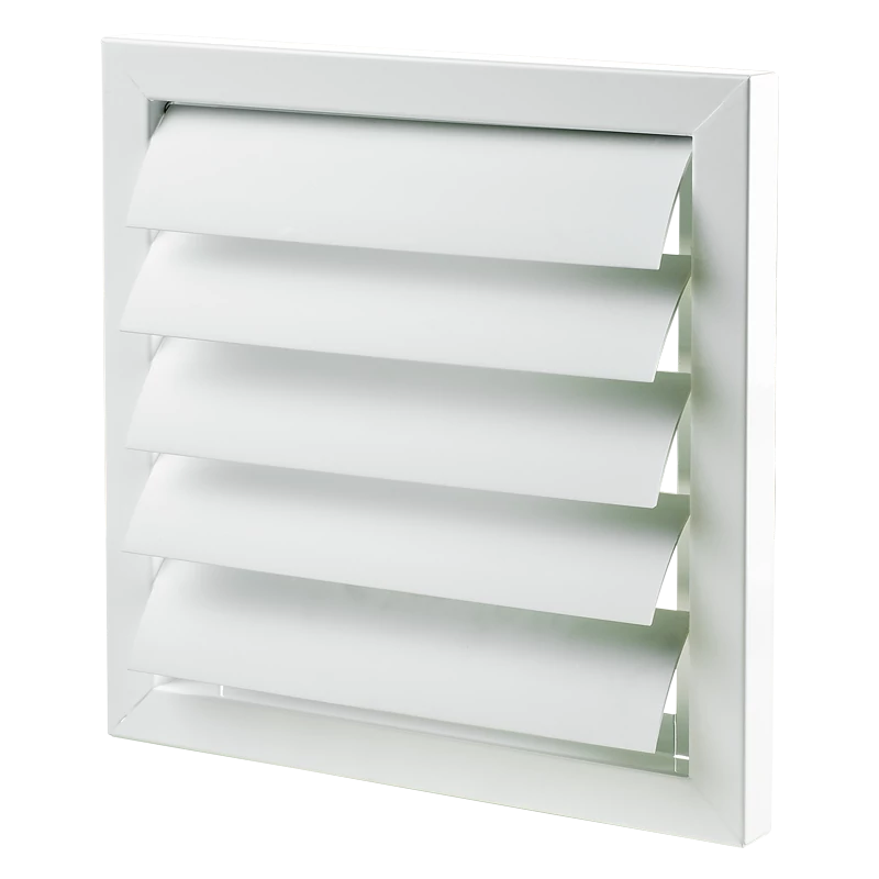 Kiváló minőségű műanyagból készült, gravitációs, zsalus szellőzőrács. Ipari és háztartási felhasználásra. 300x300 mm.