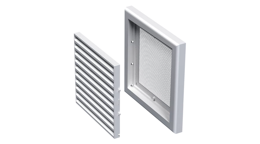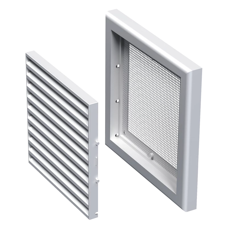 Műanyag takaróelem lakossági, közületi vagy ipari szellőzőrendszerek be- és elszívónyílásainak lezárására. Barna szín, négyszögletes kialakítás. Szúnyoghálóval. Csőcsatlakozás nélkül. 154x154 mm.