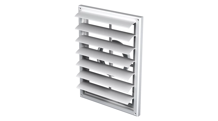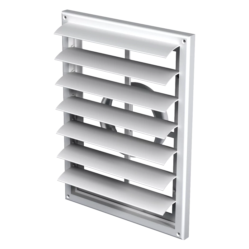 Műanyag takaróelem lakossági, közületi vagy ipari szellőzőrendszerek be- és elszívónyílásainak lezárására. Fehér szín, négyszögletes kialakítás. Gravitációs zsaluval. Csőcsatlakozás nélkül. 221x299 mm.