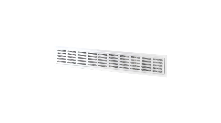 Fém takaróelem lakossági, közületi vagy ipari szellőzőrendszerek be- és elszívónyílásainak lezárására. Az elemek kialakítása lehetővé teszi mindenféle HVAC renszerbe történő beépítésre, rozsdamentes, vagy felületkezelt tulajdonsággal rendelkeznek. Horganyzott acélból készült. Fém szín. Négyszögletes kialakítás. Fix lamella. Szúnyoghálóval. Csőcsatlakozás nélkül. 475x80 mm.
