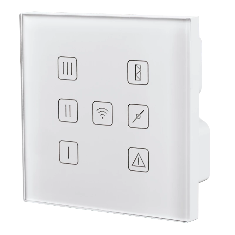 Érintőgombos falra szerelhető vezérlőpanel S21 alaplappal rendelkező légkezelő berendezésekhez. Vezeték nélküli összeköttetéssel.
