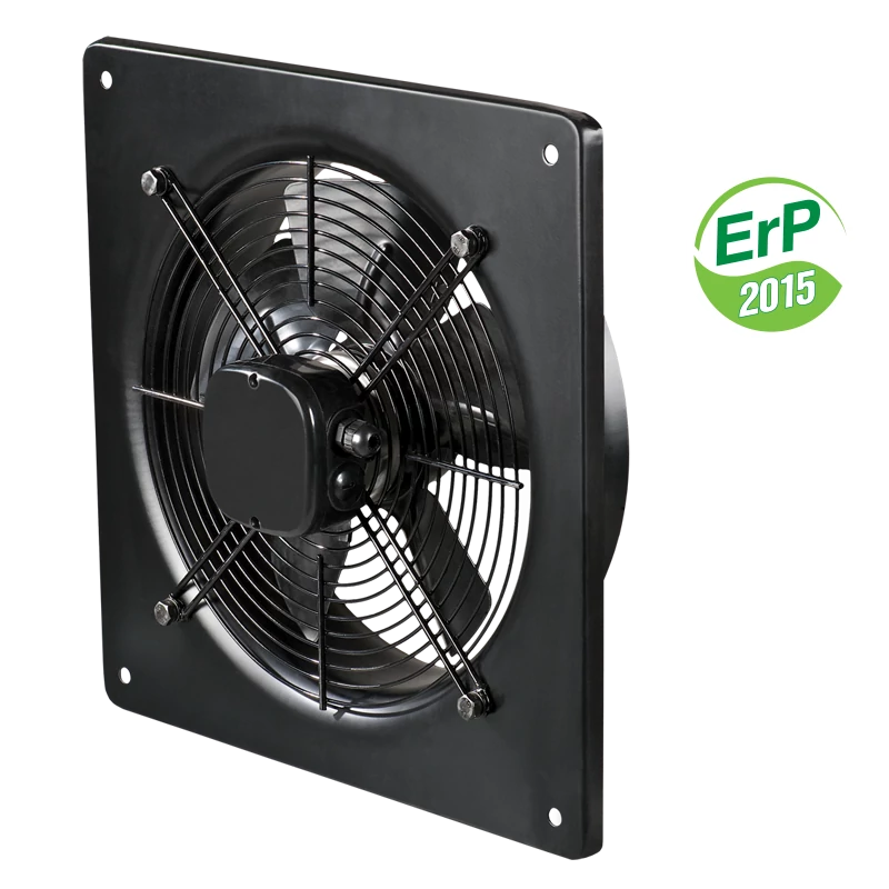 "Befúvó vagy elszívó ventilátorok olyan helyiségekhez, ahol nagy légáramlás szükséges viszonylag alacsony ellenállás mellett. Kültéri falra szerelhető. Fém házas kisnyomású axiálventilátor, 200 mm névleges méretben, 860 m3/h, 230 V, 50 Hz, IP X4"
