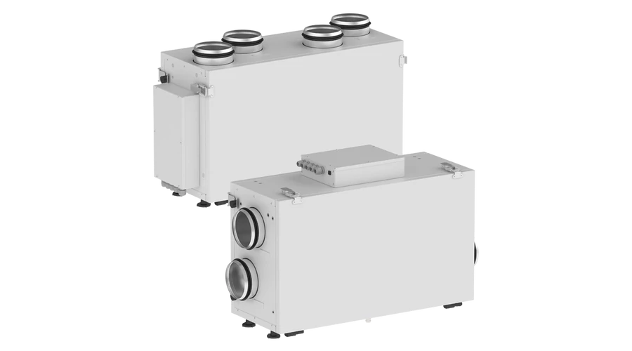 Hővisszanyerős légkezelő berendezés az energiahatékony szellőztetés kialakításához lakásokban, családi házakban, irodákban és egyéb helyiségekben. Hővisszanyeréssel csökkenthetjük az energiafelhasználást és növelhetjük a komfortot a belső terekben. Igény szerint szabályozható a szellőzés az épületben. Légkezelő berendezés álló vagy oldalfali beépítés, horizontális 125 mm-es csonkokkal, keresztáramú entalpia hővisszanyerővel, 187 m3/h 100 Pa teljesítménnyel, A1 vezérléssel.